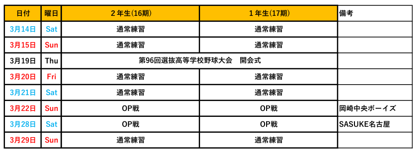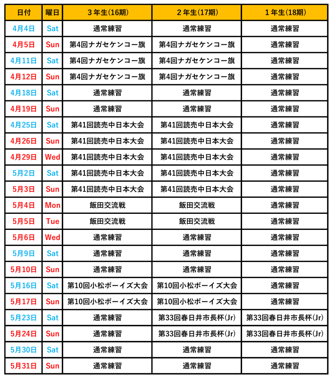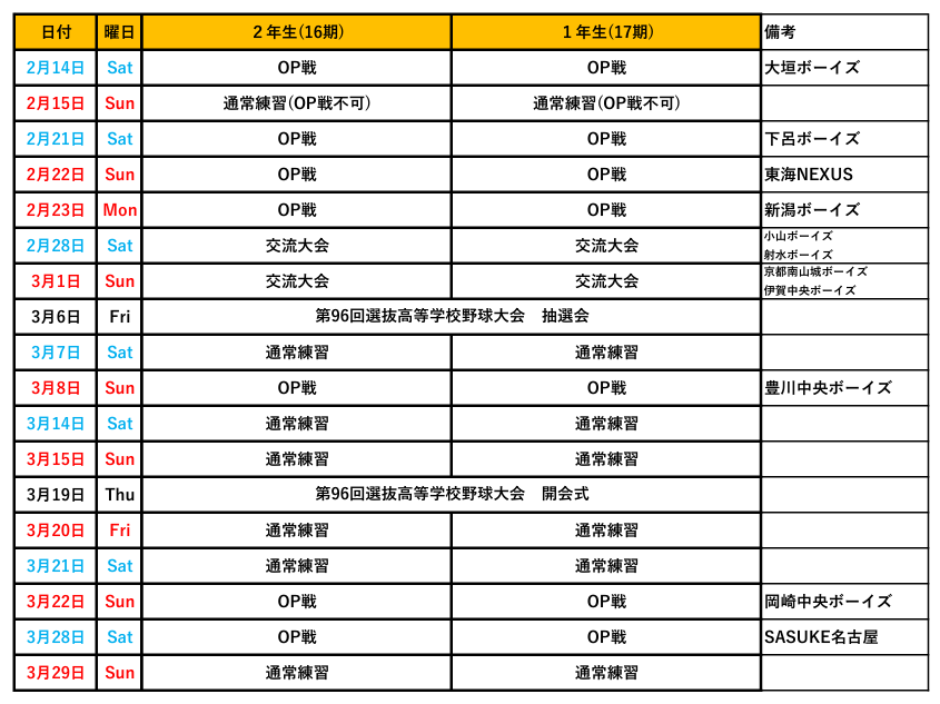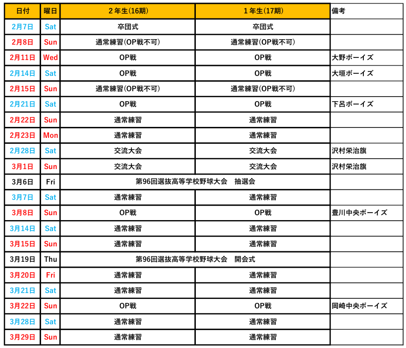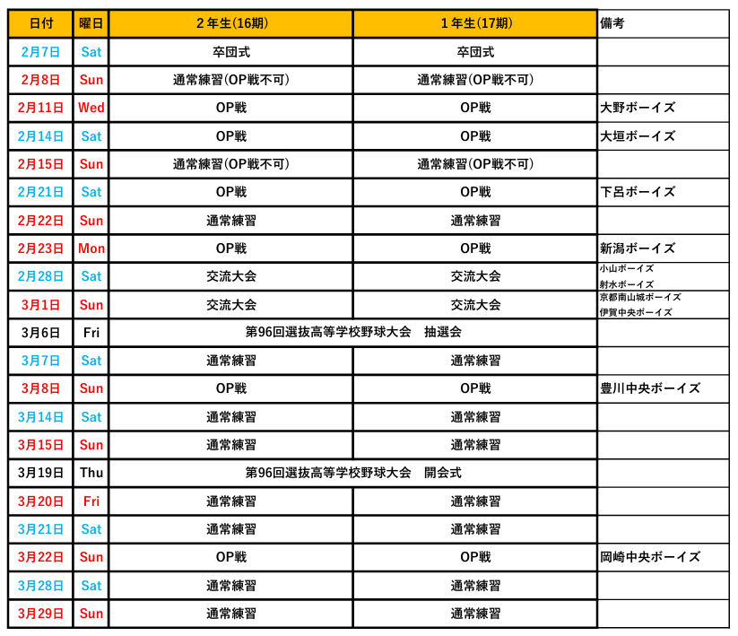 スケジュール 更新しました